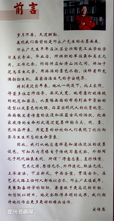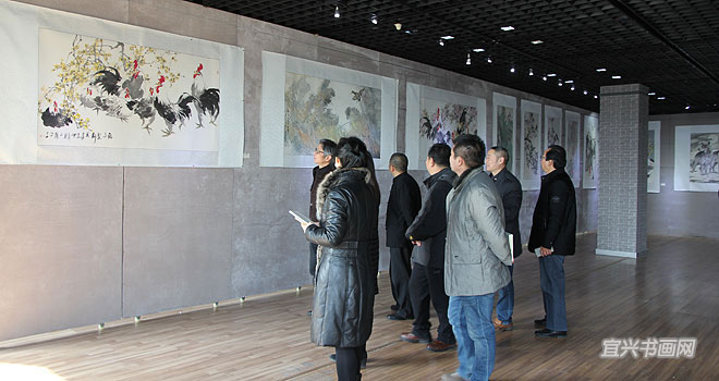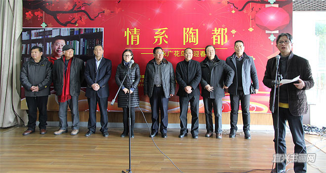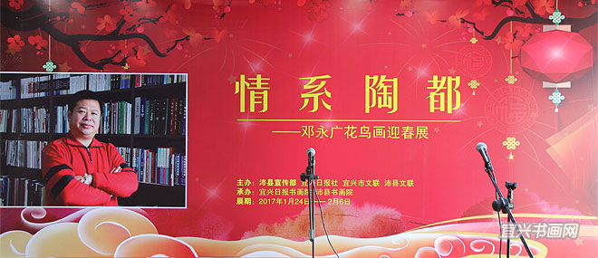 1月24日上午,由沛县县委宣传部、宜兴日报社、宜兴市文联、沛县文联联合主办,“情系陶都——邓永广花鸟画迎春展”在宜兴日报书画院开幕。 图为展览开幕式,宜兴日报社社长程伟主持 |