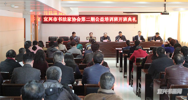 3月5日下午,宜兴市书法家协会第二期公益培训班开班典礼在宜兴日报社举行。著名书法家储云,宜兴日报社社长程伟,市书协主席庞现军,市书协副主席陈伟、杭洪祥、张弦,以及书协理事、全体培训班学员出席活动。 |