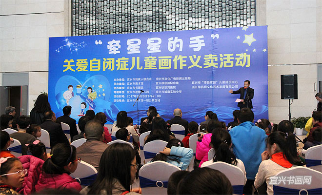 3月26日周日下午,宜兴市美术馆迎来了大批的孩子、家长和社会爱心人士,这里正在举行由市残疾人联合会、市文广新局主办的“牵星星的手”关爱自闭症儿童画作义卖活动。 |
