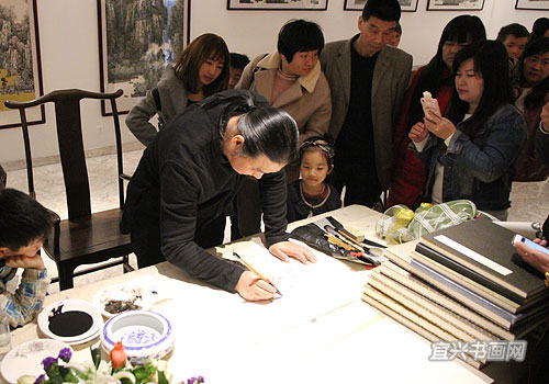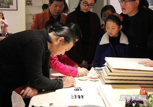 姜东现场作画题字 |