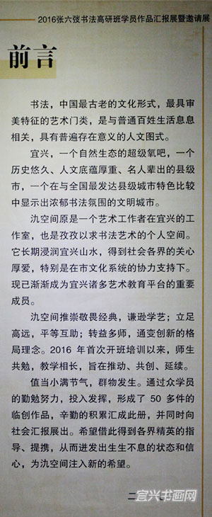 6月3日下午,“2016张六弢书法高研班学员作品汇报展暨邀请展”在宜兴日报书画院开展。 |