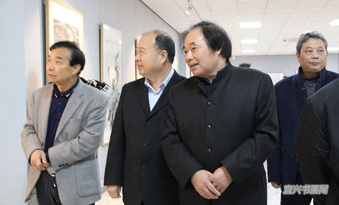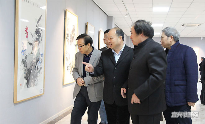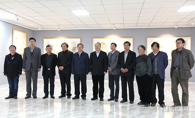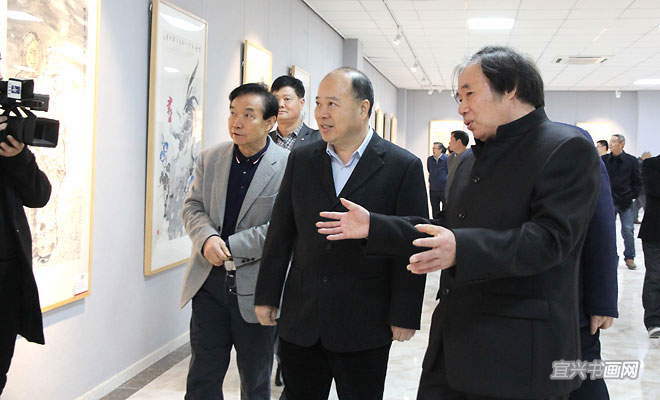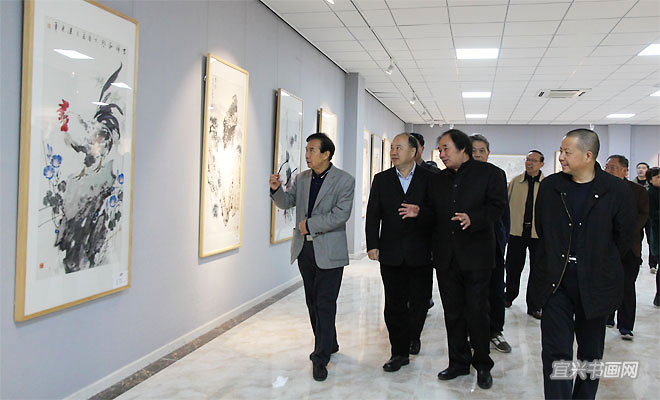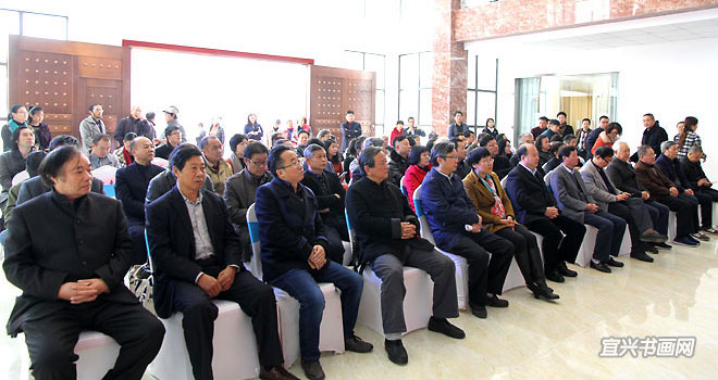 11月28日上午,宜兴杭中吉艺术馆嘉宾云集,由市委宣传部、丁蜀镇政府、市文广新局、市文联主办的“中国书画30家巡展(宜兴站)”在这里举行。市人大主任刘亚民、市政协副主席芮俊燕、丁蜀镇人大主席周泉荣、市文广新局局长许夕华、市陶瓷行业协会会长史俊棠,中国书画30家全国巡展策展人刘振虎共同为展览揭幕。 |