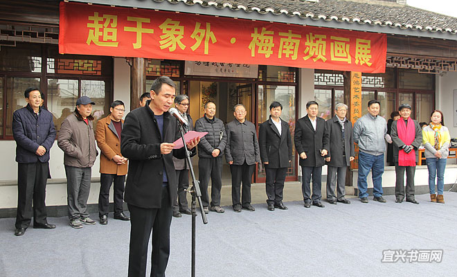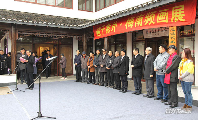 12月28日上午,徐悲鸿大师的家乡宜兴屺亭迎来了八方宾客,“超于象外——梅南频画展”在悲鸿故居展览馆隆重举行。展览由江苏省美术家协会、江苏省作家书画联谊会、中国人民大学画院主办,悲鸿艺术书画院、民进宜兴市委承办。 |