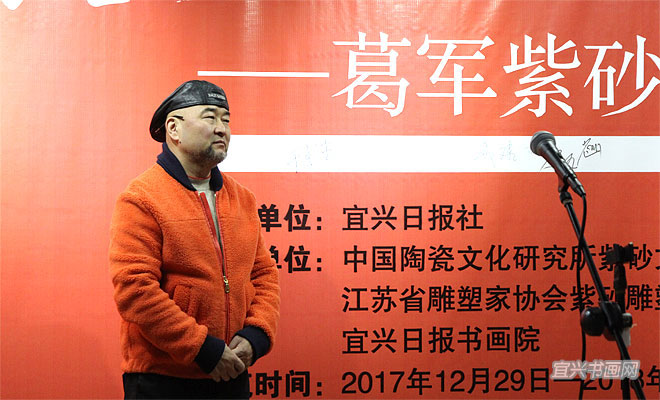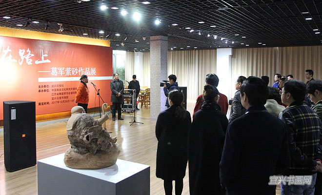 12月29日上午,“在路上——葛军紫砂作品展”在宜兴日报书画院开展。这是葛军大师今年在宜兴市图书馆、市美术馆先后举办展览之后的第三个展览。作为早就享有盛名的大师,为了满足各方面观众的需要,例如这次是为丰富新年元旦的群众文化生活,仍乐于不辞辛苦地操劳于展事,这样的精神令人感动。 |