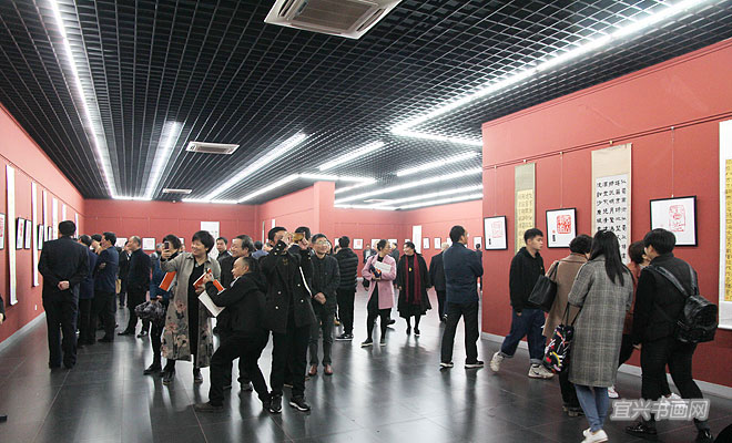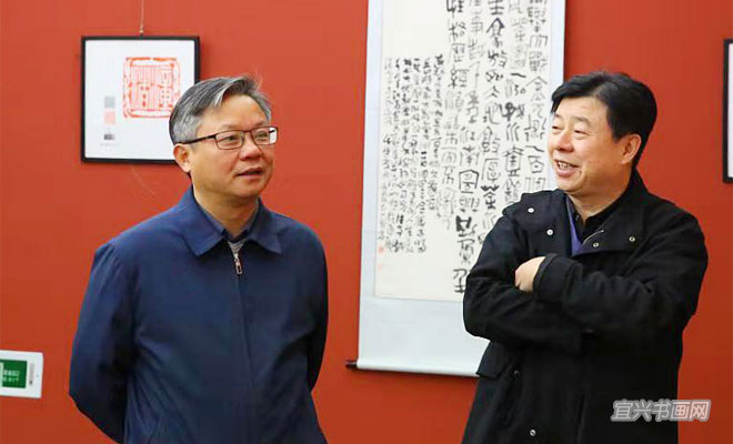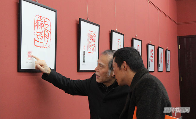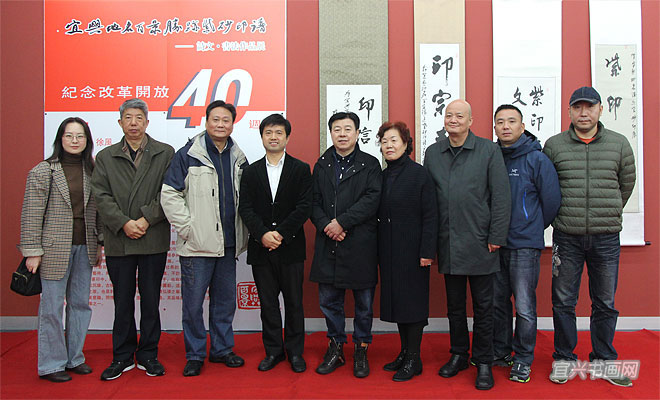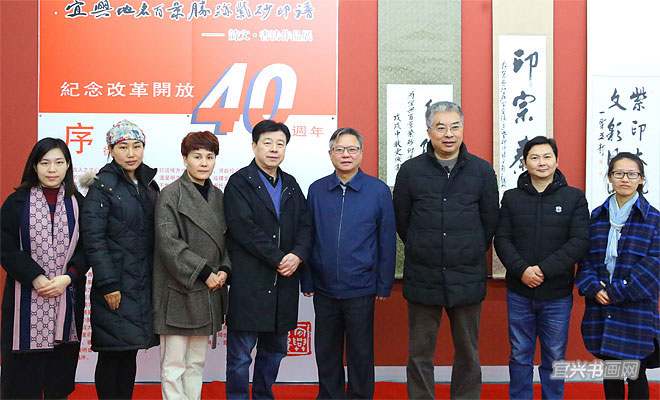 由宜兴市文广新局、丁蜀镇政府、宜兴市文联、宜兴市陶瓷行业协会、无锡市书协篆刻专委会、宜兴市书协、宜兴书画院联合主办,宜兴市蜀山印社等单位承办,“纪念改革开放40周年——宜兴地名百景胜迹诗文书法紫砂印展”于11月18日上午在吴冠中艺术馆隆重举行。 |
