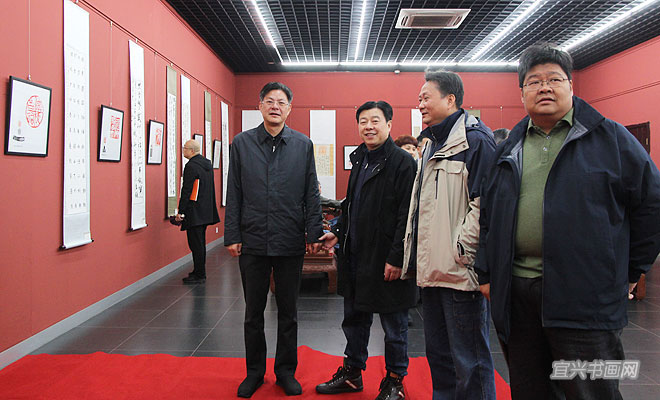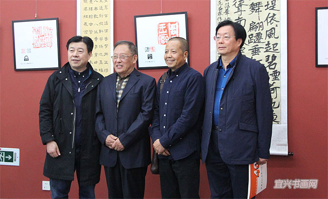 中国陶瓷工业协会副理事长、宜兴市陶瓷行业协会会长史俊棠,宜兴市文联主席魏敏,中国工艺美术大师、中国陶瓷艺术大师毛国强,中国工艺美术大师、中国陶瓷艺术大师吴鸣题字 |