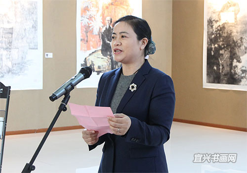 宜兴市政协副主席温秀芳致辞。她说,宜兴注重文化成果的推广交流,此次与首都师范大学合作举办展览,正是宜兴、北京两座城市文化艺术交流建设的重要一步,依托宜兴富有文化特色的书画、紫砂艺术,借助首都师范大学齐全的人文学科,双方协力开展合作共建,推动两地文化建设的繁荣发展。 |