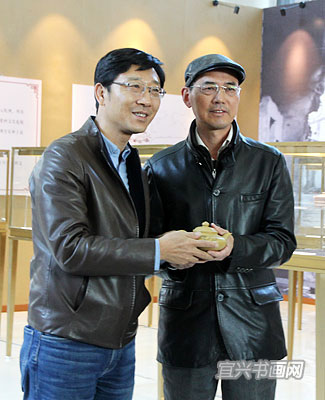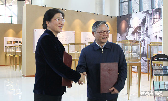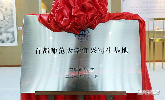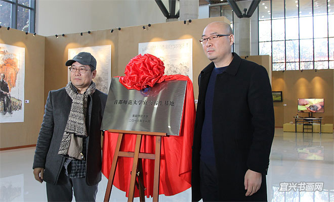 宜兴市美术馆馆长杜雪之与首都师范大学美术学院院长韩振刚为首都师范大学宜兴写生基地揭牌。 |