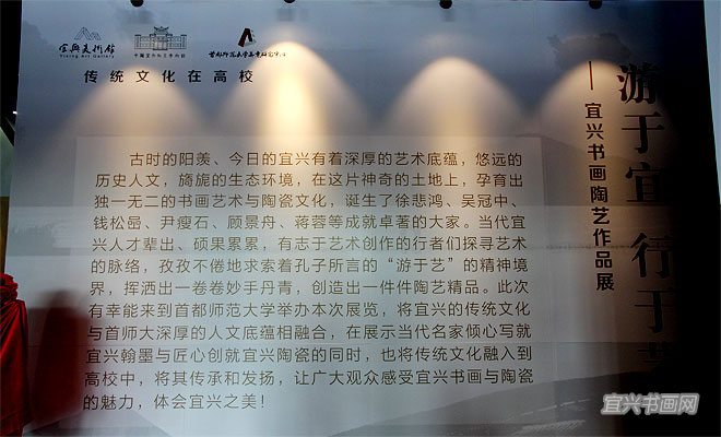 11月22日,由首都师范大学和宜兴市文广新局主办,首都师范大学美育研究中心、宜兴市美术馆(书画院)、中国紫砂博物馆承办的“游于宜 行于艺——宜兴书画陶艺作品展”在首都师范大学隆重开幕。 |
