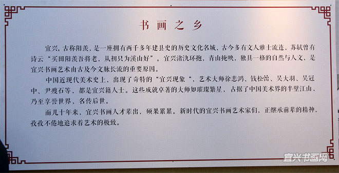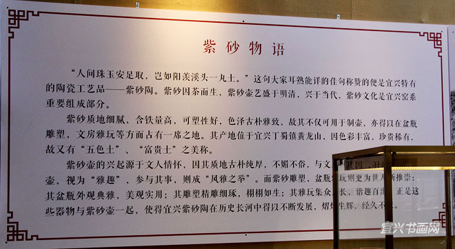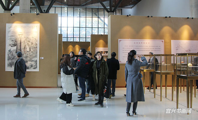据悉,本次展览一共展出28幅书画作品和24件陶艺作品。书画作品由宜兴书画四大名人肖像画和宜兴籍书画名家作品组成,向观众展示宜兴书画家的艺术积淀和宜兴山水的秀丽。陶艺展览分为矿料、工具、陶艺作品三部分,展示了陶土经由人手的塑造与烈火的试炼,转变为精美作品的奇妙过程。书画和陶艺是宜兴两大特色,展览展现了宜兴书画陶艺的魅力和当代匠人的巧手妙心,带给人知识的启迪与无限的遐想。展览将持续至11月30日。 |