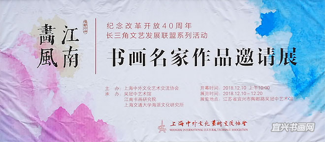 为纪念改革开放40周年,长三角文艺发展联盟系列活动“江南画风”书画名家作品邀请展,12月10日上午在吴冠中艺术馆开幕。展览由上海中外文化艺术交流协会主办,吴冠中艺术馆、上海江南书画研究院、上海交通大学海派文化研究所承办。宜兴市委常委、宣传部长沈晓红出席开幕式并致辞。 |