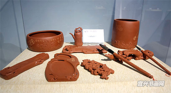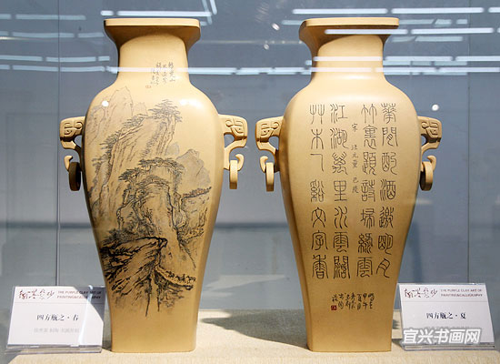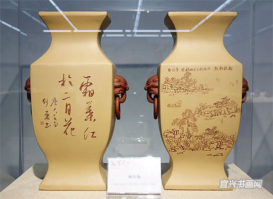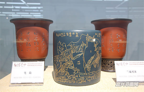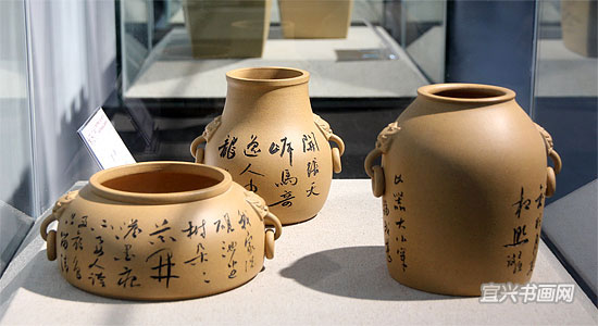 由市委宣传部主办,市文广新局、市文联协办,市陶协、市美协和吴冠中艺术馆承办的“翰墨紫砂——第二届书画家陶艺家联袂创作紫砂作品展”,于12月28日下午开幕。 |