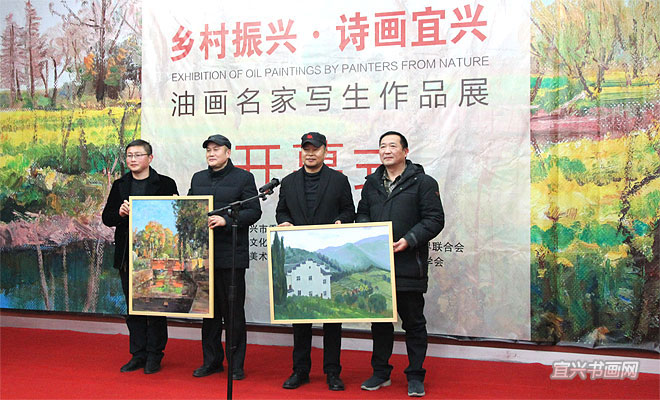 1月23日下午,“乡村振兴·诗画宜兴——油画名家写生作品展”在吴冠中艺术馆开幕。展览由宜兴市委宣传部主办,市文广新局、市文联协办,市美术家协会、吴冠中艺术馆、市油画学会承办。江苏省美协副主席、省油画学会主席陈世宁,宜兴市委常委、宣传部长沈晓红,无锡市美协副主席、吴冠中艺术馆执行馆长吴俊达,宜兴市美术馆馆长杜雪之,市美协主席、吴冠中艺术馆馆长承强,市文联副秘书长、美协副主席承庆,市文联副秘书长余尚红,市美协副主席刘明、刘建平、尹祥明、陈剑平、邹蕴芳、周明、洪辉、蒋焕余,江苏新源动力有限公司董事长谈岳明,洑西村主任沈超,乾元茶场董事长李允中出席活动。市文联主席魏敏主持开幕式。 |