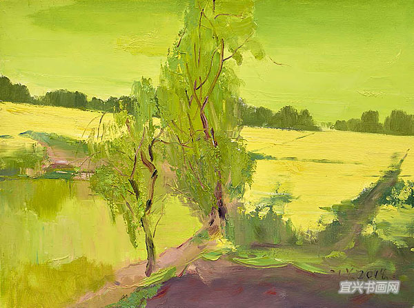 张立影《池塘边的柳树》 |