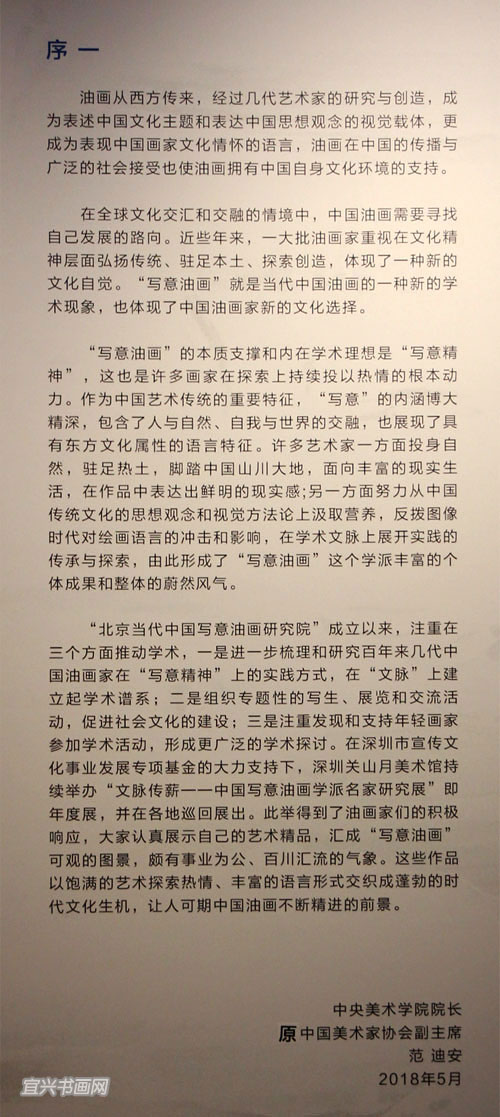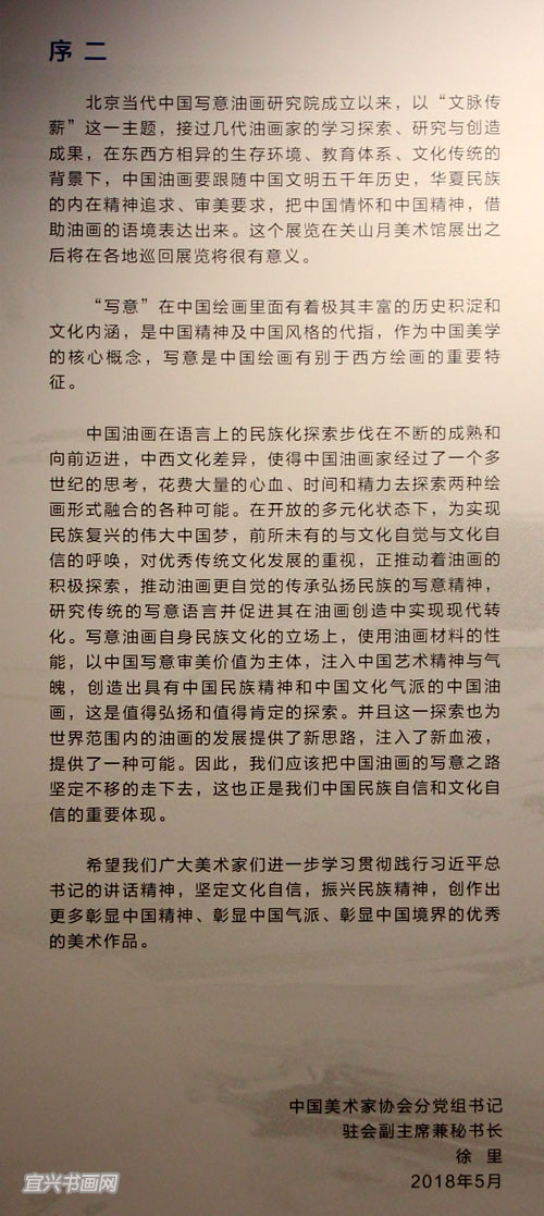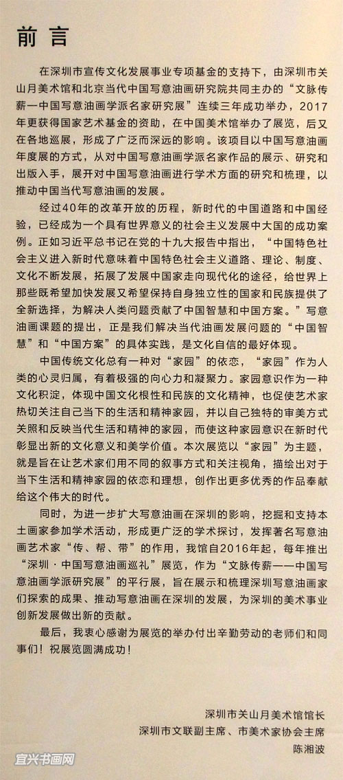 展 讯文 脉 传 薪2018中国写意油画学派作品年展(宜兴站)参展艺术家(以年龄排序) 主办:深圳市关山月美术馆、北京当代中国写意油画研究院、宜兴市文体广电和旅游局 展览时间:2019年3月16日—4月5日