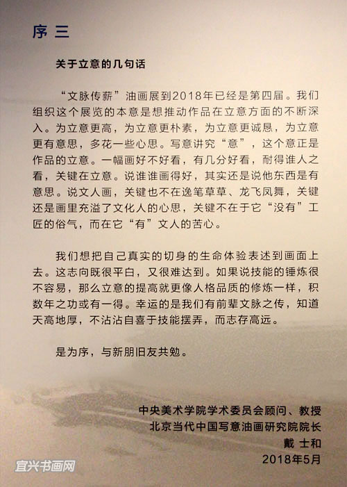 3月16日下午,由深圳市关山月美术馆、北京当代中国写意油画研究院、宜兴市文体广电和旅游局联合主办的“文脉传薪——2018中国写意油画学派作品年展(宜兴站)”在宜兴市美术馆开幕。 |