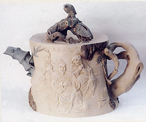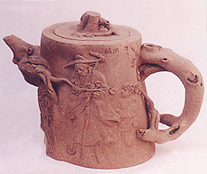 简 说 紫 砂 邵家声 (原载1999年11月3日新民晚报电子版) 紫砂,呈褐色,因紫乃富贵之色故名之。宜兴自明清以来就有陈鸣远、邵大亨等大家辈出。这个集钤印题款、有中国翰墨香味的手工艺制品,以及独特泥质、独特技艺,且成型之难、烧温之高等特色都甚于其它陶质。紫砂因不施釉彩,本色自然,又以牛角薄片无数次光拭,使其发出黝黑之幽光,故不轻佻哗众而更取其宠,更具神秘感。传说紫砂“泡茶隔夜不馊,种花不烂根”,“越用越新”,古今中外深得收藏爱好者的青睐。 紫砂历史悠久、名家众多,宋梅尧臣就赞“人间珠玉安足取,不及阳羡溪头一丸土”。它的价值在于:一、别致的审美取向,不同于一般陶瓷要“白如玉”;二、“越用越新”,“养壶”之说使人有增值感和玩心;三、手工制作,技艺精湛,多品不多量,有的还声明为孤品,具有收藏之要素;四、软性成型,比硬质(如石、玉等)制作难,而且还要过干燥烧成“鬼门关”,是易碎品,其“幸存者”更为珍贵;五、其壶口盖谨严,一壶一盖,不能“张冠李戴”。紫砂的雕塑造型有“瘦、漏、透、皱、秀”五奇美,其艺术性甚于制壶。前几年因其实用品行货多产而价值走跌,但其艺术品中之精品仍在工艺古玩中占尽风头。 |