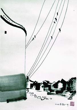 高空谱曲(水墨画) 吴冠中
