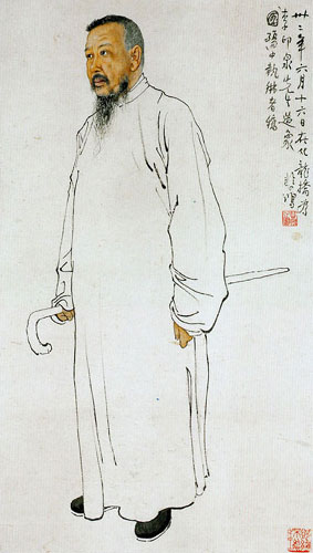 徐悲鸿与“执绋者”成正平 徐悲鸿有一幅著名的人物画《国殇中执绋者》,画中一位黑髯长者,身材魁梧,气宇轩昂,横握手杖,表情凝重。画上说明此长者叫李印泉,但他究竟是谁,有什么身份,此画的历史背景是什么,则鲜为人知,在有关的悲鸿传记及回忆录中也未提及此事。 熟悉近现代史的人都知道李根源这个著名人物,印泉则是他的字。他是云南人,早年参加同盟会,与蔡锷发动过云南起义,后又参加孙中山领导的讨袁之役和护法斗争。1922年起曾历任北洋政府农商总长、代总理,1927年因反对曹锟贿选总统愤而辞职,退隐苏州。 值得一提的是,他担任云南讲武堂总办时,朱德是他的学生。朱德一直非常爱戴这位恩师,解放后,李老被朱老总邀请到北京,共商国是。 1932年12月8日,日军进攻上海,淞沪战争爆发。十九路军英勇奋战抗击日寇,但由于当时国民政府不积极支持,日军又绕道太仓,从浏河登陆,使十九路军腹背受敌,不得已而退守昆山。战争最后以签订《淞沪停战协定》而告结束。 在此期间,李根源为淞沪抗日多方奔走,动员爱国人士捐款,将战斗中英勇负伤、来江苏抢救无效为国捐躯的七十八名将士安葬于苏州。在举行阵亡将士葬礼时,李根源神情肃穆地走在了送葬队伍的前列,这一幕深深地烙在了徐悲鸿大师的脑海中。 1943年,中国抗战正处在决战胜负的关键时刻,徐悲鸿在重庆常常会想起李老当年送葬的一幕,并由此萌生了创作《国殇中执绋者》的想法。凭借深刻的记忆,他的画作逼真而充满了艺术的感染力,通过褒扬李老的爱国精神,来激励全国人民坚持抗战的决心和必胜的信心,表达出作者抗日爱国的赤子之心。
