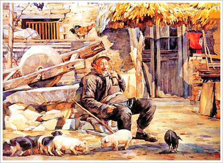 他勇于将中国画、油画的技法糅合进来,笔法时而拙朴时而洒脱,毫无造作、雕琢之感,浑然一体,意境天成。
