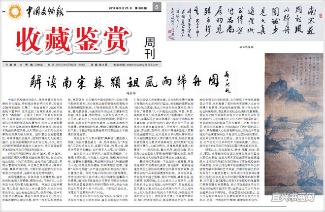 《中国文物报》2013年9月25日发表马乐平著文《解读南宋苏显祖<风雨归舟图>》