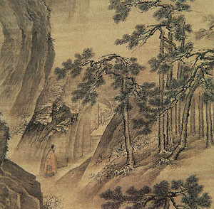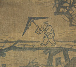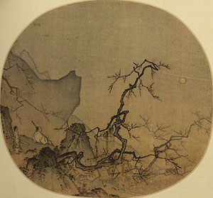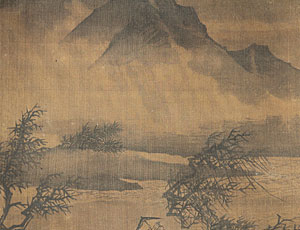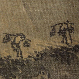 —————————————————————————————— 再察其所用之绢,乃南宋宫廷画家传世作品常用之并丝细绢,一般所见立轴为竖里(经丝)两根丝并着,横里(纬丝)单丝织成,手卷则反之,故卷收不易折断,这种绢传世品相,较同时期其他绢材要好得多,也是南宋宫廷的特殊用材,如马远《梅石溪凫图》、《踏歌图》,马和之《后赤壁赋图》,夏圭《梧竹溪堂》等等。各个时代的材料都在变革,随着纺织业的发展到明代早期,所见绢本多数为双丝绢(横竖都是两根丝并着织成)。所以,特殊用材也证明了特定的时期。 |