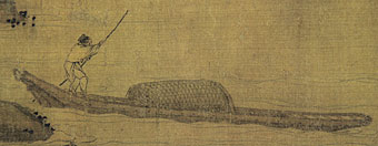 —————————————————————————————— 细观《风雨归舟图》的图式,确与马远十分相近。整个画面把江南风雨景象刻画的淋漓尽致、美奂绝伦。此图结构远山近坡,中间江面宽阔,远处只画几座山峦,已改变了北宋山岭高峻重叠、树木茂密层深、景物丰盈繁复的布局,而趋向于简疏空阔,与马远的《踏歌图》等的结构方式相类似,有边角之景的特点。而图式从繁密向简疏的转变是南宋画院画家改革北宋画风的重要方面,从李唐、刘松年到马远、夏圭,布局是越来越疏旷,苏显祖显然也是积极参与图式改革的施行者之一。因此,从图式的布局来看,此图属南宋风格无疑。 |