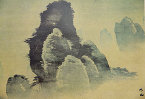 我们再用反推法将其与明代早期浙派作比较,可以发现它和明代浙派画家的作品有着明显的区别。明代浙派画家深受南宋马远、夏圭的院体风格影响,但一改南宋浑厚沉郁的风格,并且笔墨更趋狂放和酣肆。浙派健将吴伟,粗笔山水主要师承马夏,同时又受梁楷影响,笔力豪放挺健,水墨酣畅,然其山石皴法除斧劈皴外,兼参折笔皴、乱柴皴等多种皴法,笔法颇为灵动,如 《渔乐图》(图23,故宫博物院藏)。《风雨归舟图》则以长短斧劈皴为主,笔致也较为朴质(图03、图07),两者自泾渭分明。浙派领军人物戴进,山水画取景丰富,境象恢宏,带有更多常人的生活情趣。在具体画法上,用笔劲健硬峭,墨色淋漓,法度严谨,从而形成自己劲挺、明快的风貌,还吸取北宋李成、范宽、郭熙之长,并及元代黄公望、吴镇、盛懋诸家,具有苍润浑厚的特点,甚至有些作品全无南宋院体痕迹,如《洞天问道图》(图24,故宫博物院藏)。其它浙派后期画家,如张路用笔粗重,善用水墨刷染,多染少皴,墨气滃郁,如《山雨欲来图》(图25,故宫博物院藏);蒋嵩笔法狂肆,水墨大片渍染,墨色过于黝黑,如《渔舟读书图》(图26,故宫博物院藏);汪肇勾皴笔法狂纵飞动,露浮躁之气,如《观瀑图》(图27,普林斯顿大学美术馆藏);史文的笔法粗豪方硬,显得强僵板刻。这些画家的笔墨技法与《风雨归舟图》中笔法劲健放纵而沉凝,墨色酣畅而空朦的笔致墨韵,存在着明显的差异,明中后画风更是相差甚远,因而绝不是出于这些浙派画家之手。再则即使浙派画家要仿造南宋人的伪作,也会托名大画家若马远、夏圭、梁楷等人,岂会署上一个名不见经传的“苏显祖”之名? |