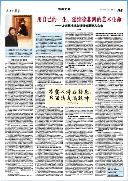 徐悲鸿夫人廖静文于2015年6月16日在北京逝世,享年92岁。 用自己的一生,延续徐悲鸿的艺术生命