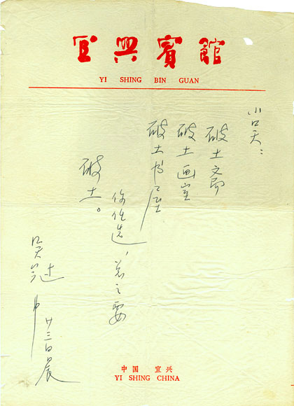 吴冠中先生1981年为吴俊达题“破土斋”