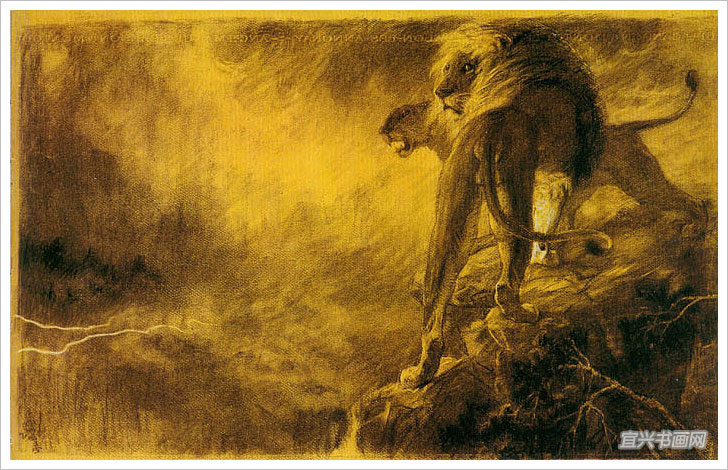 狮吼 62.5×41cm 1922年