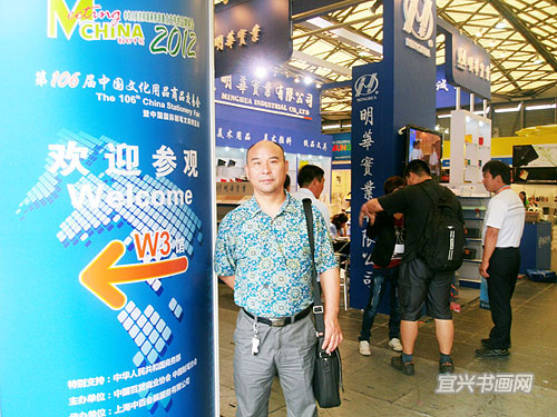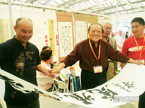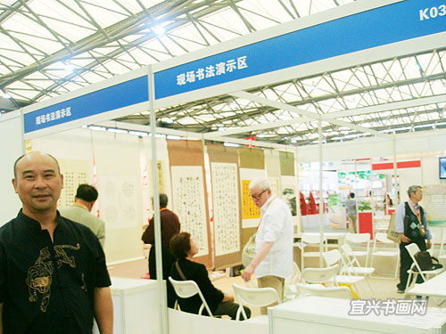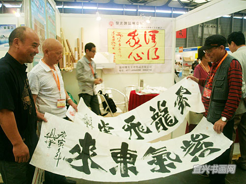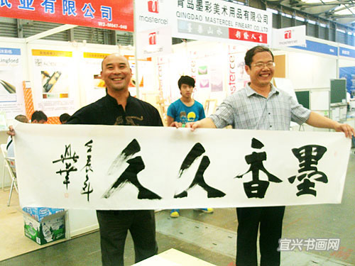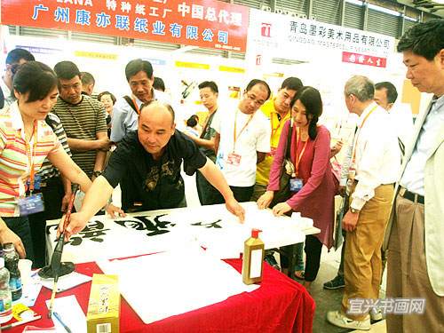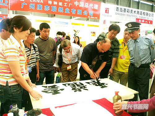 第106届中国文化用品博览会于2012年5月31日至6月2日在上海新国际博览中心举行,W3号馆的现场书法演示吸引了很多书法爱好者和观演嘉宾,来自中国书画之乡江苏宜兴的戚鼎华现场挥毫,即兴书写了数幅新魏体书法,赢得在场观摩者一致好评,并纷纷要求合影或收藏其作品。 |