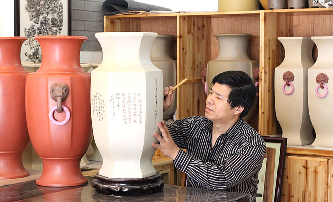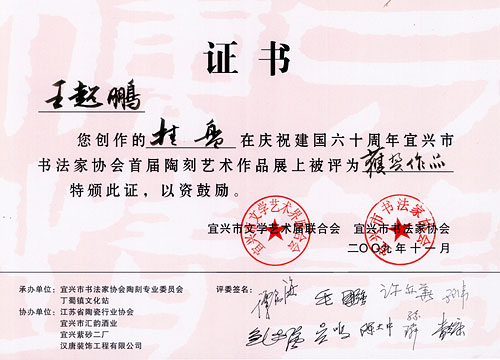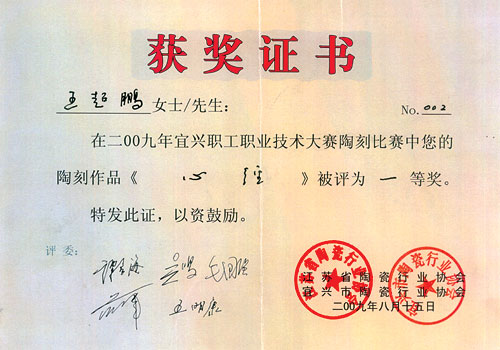 1961年生于宜兴。现为中国工艺美术学会会员,江苏省书法家协会会员。长期从事书法篆刻与紫砂陶刻,书法线条力求浑厚又不乏飘逸,端庄稳重,宽博灵动,把书法理念融进陶刻,运用各种刀法充分表现书法的韵味,努力追求书画与紫砂的有机结合,增加作品的文化内涵。 |