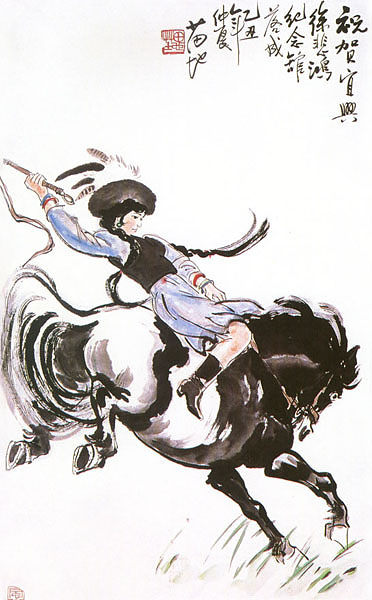 苗 地 《驯马图》(国画) 45.5cm×5cm