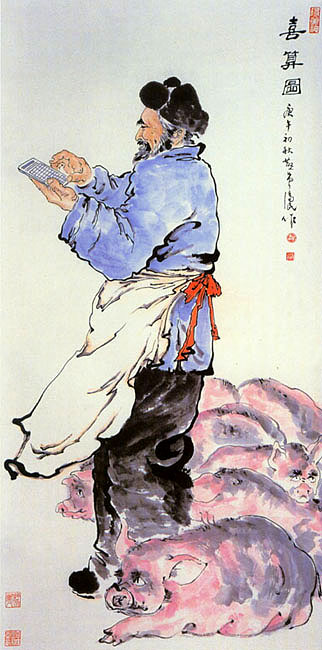 曹济民 《喜算图》(国画) 66cm×130cm