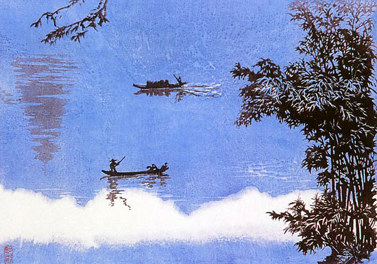 王树艺 《侗乡晨渡》(版画) 39cm×28cm
