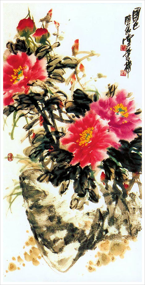 新春 138×58cm 参加全国花鸟画(牡丹)特展